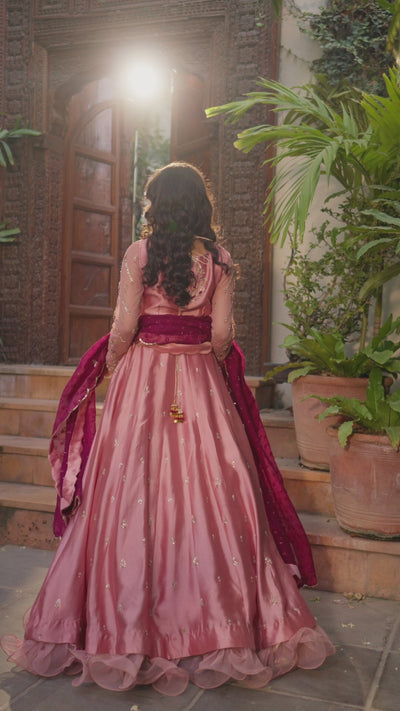 Blush Pink & Magenta Choli Lehnga Nur Set