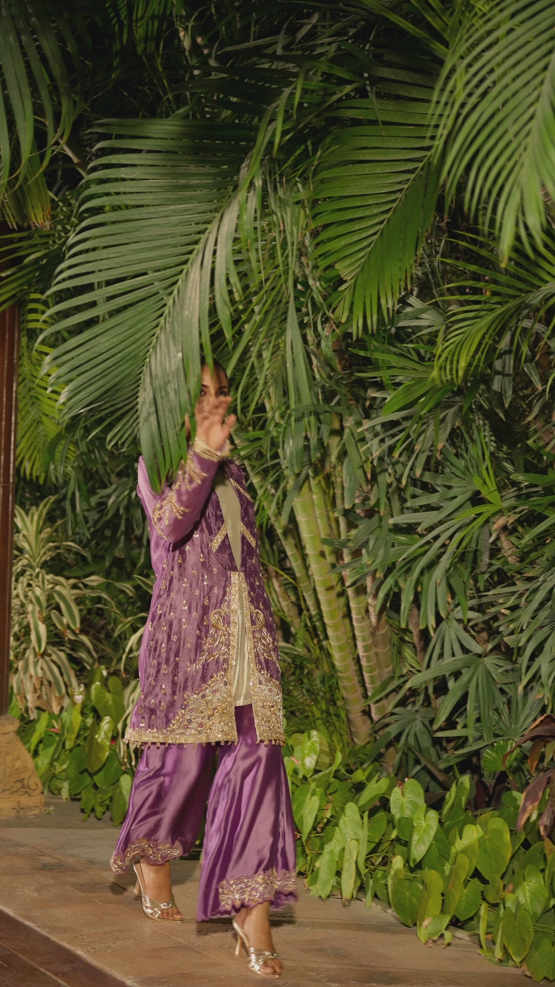 Wrapped in regal tones and intricate artistry, this ensemble brings together rich textures, timeless handwork, and a silhouette crafted for those who dress to leave an impression.