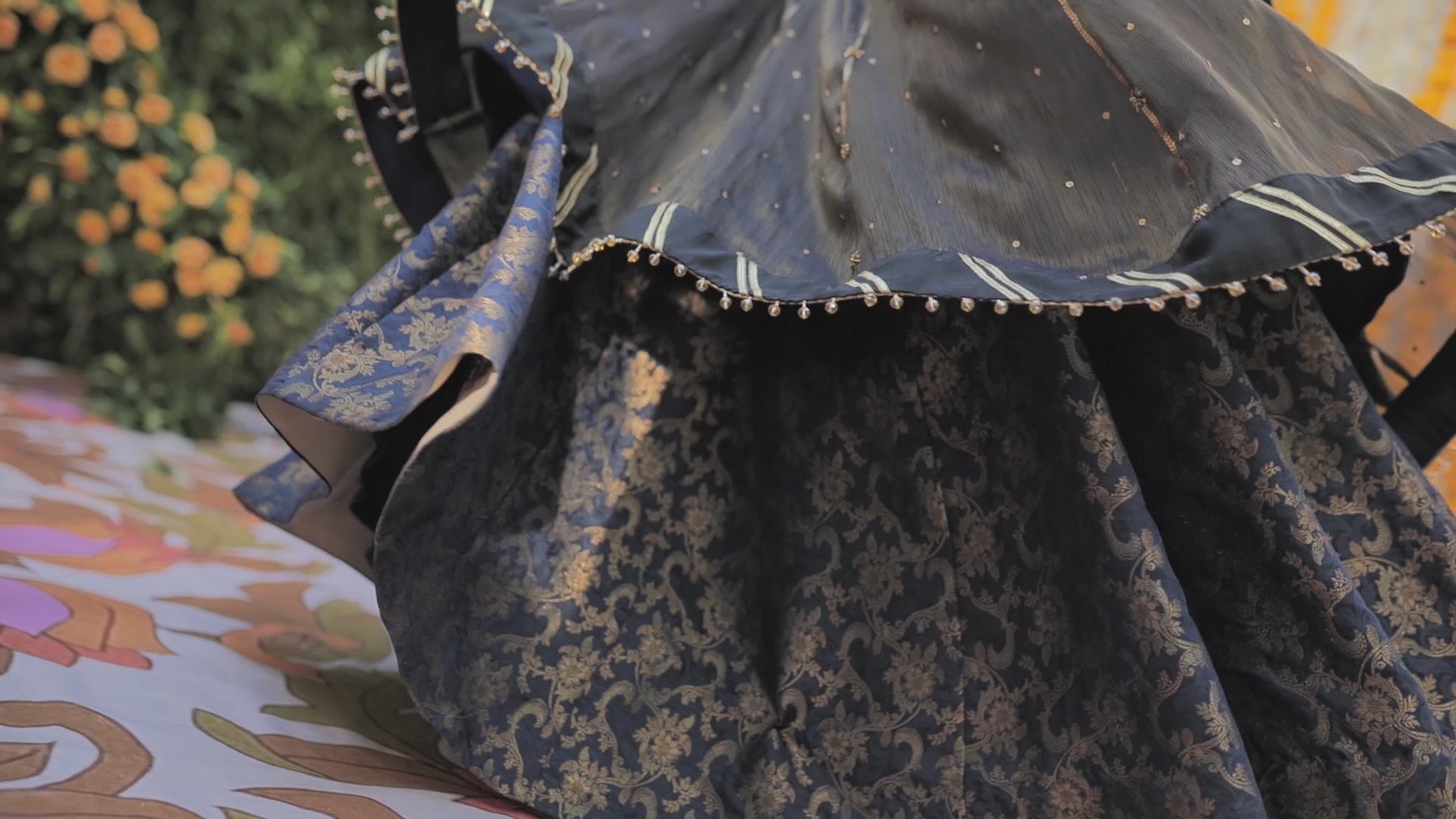 Shirt: Shirt is an Anarkali made of Mehsuri Silk with antique kora, dabka, sequins and stones work all around.