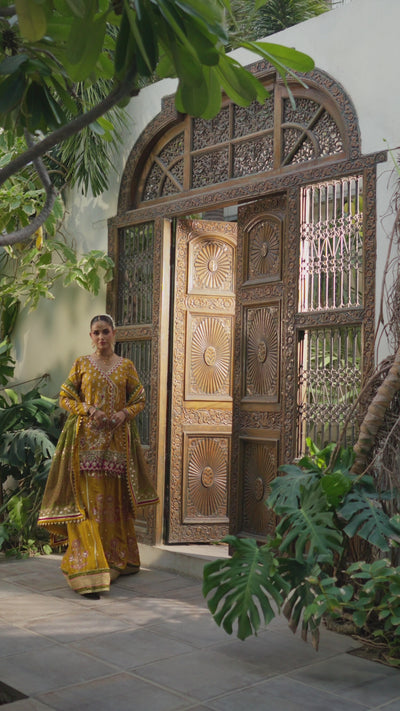 A mustard masterpiece glowing with heritage charm and festive radiance.